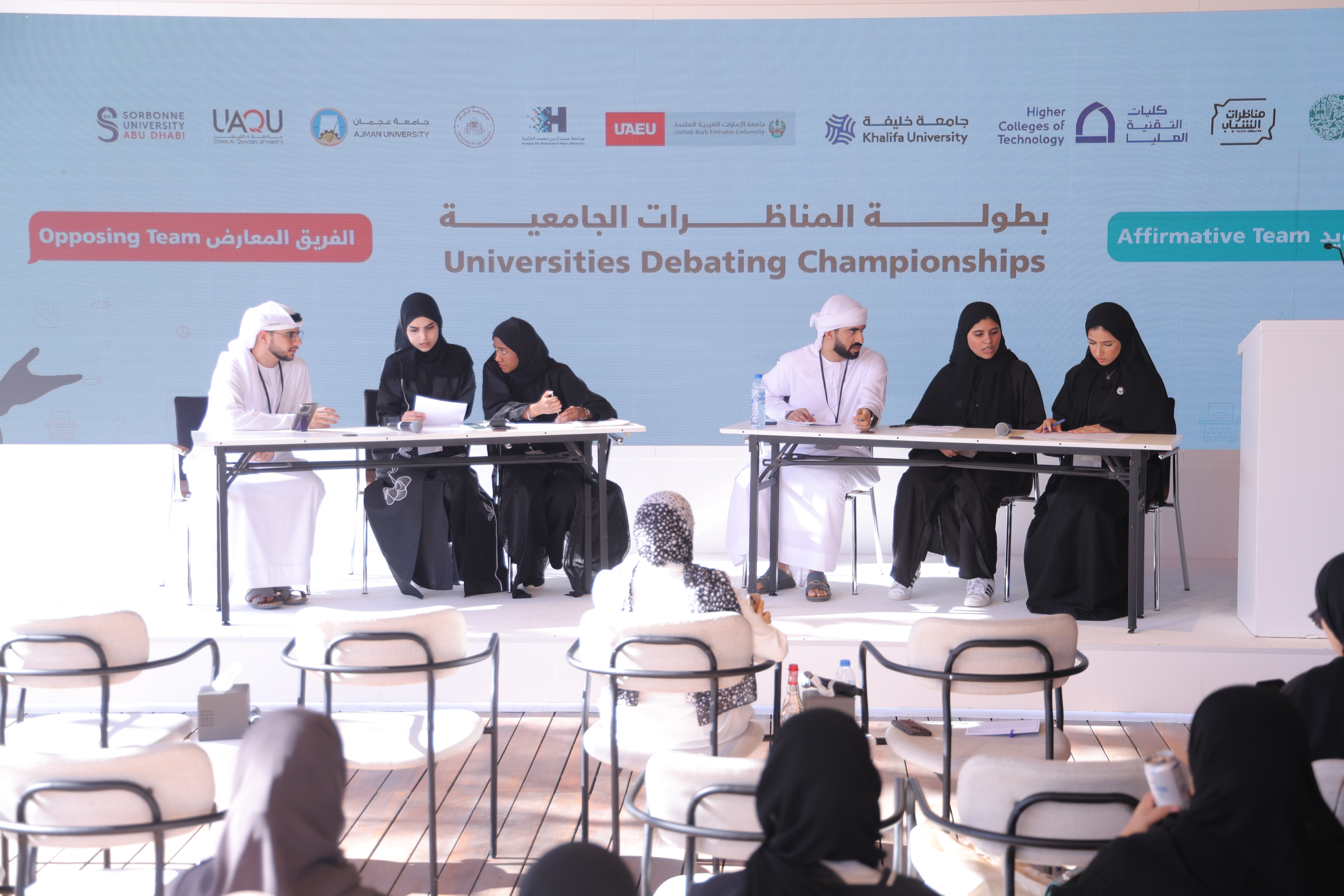 منصّة حوارية تمنح الشباب إمكانية تقديم وجهات نظرهم وآرائهم حول مختلف المواضيع، والتي تهدف إلى صقل مهارات الشباب وتعزيز قدرتهم على الإقناع من خلال الحوار المبني على الحقائق والبيانات العلمية الموثّقة، وتُمكنهّم من التعرف على الأبحاث والدراسات التي من شأنها دعم آراءهم. وتنظم المؤسسة سنويًا بطولة المناظرات الجامعية، وهي منافسة بين الجامعات في الدولة، حيث تتنافس الفرق في مواجهات فكرية تهدف إلى تعزيز المعرفة، وتقريب وجهات النظر، وتبادل الرؤى ضمن إطار حواري بنّاء.